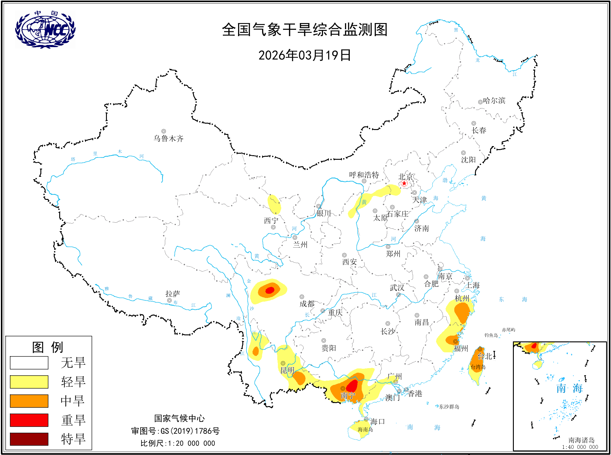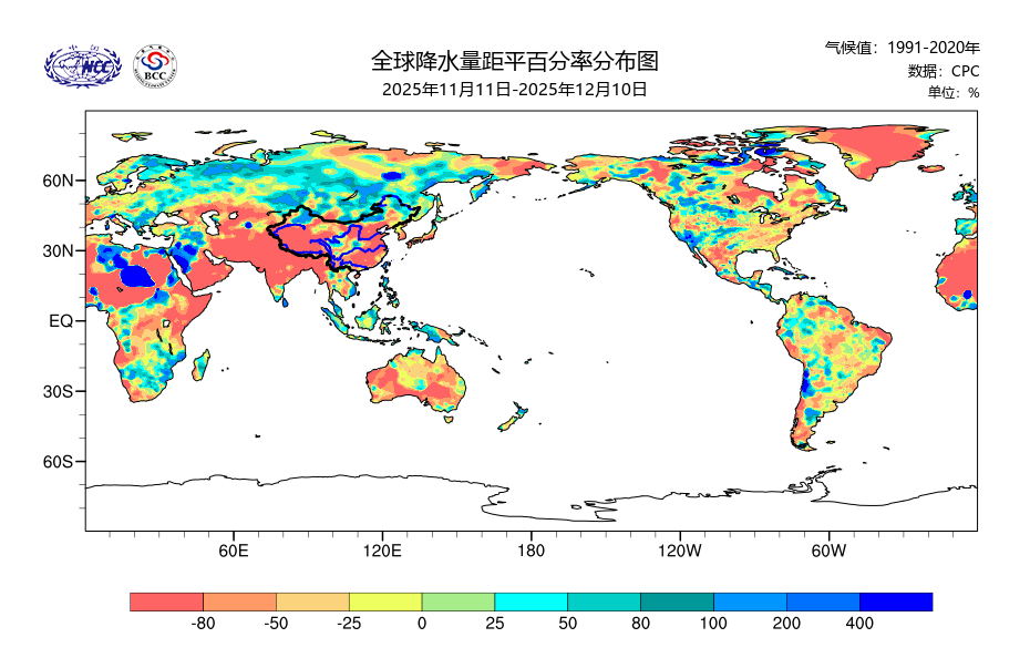 China 20-Day Percent of Normal Precipitation 中国最近20天降水偏离正常百分比