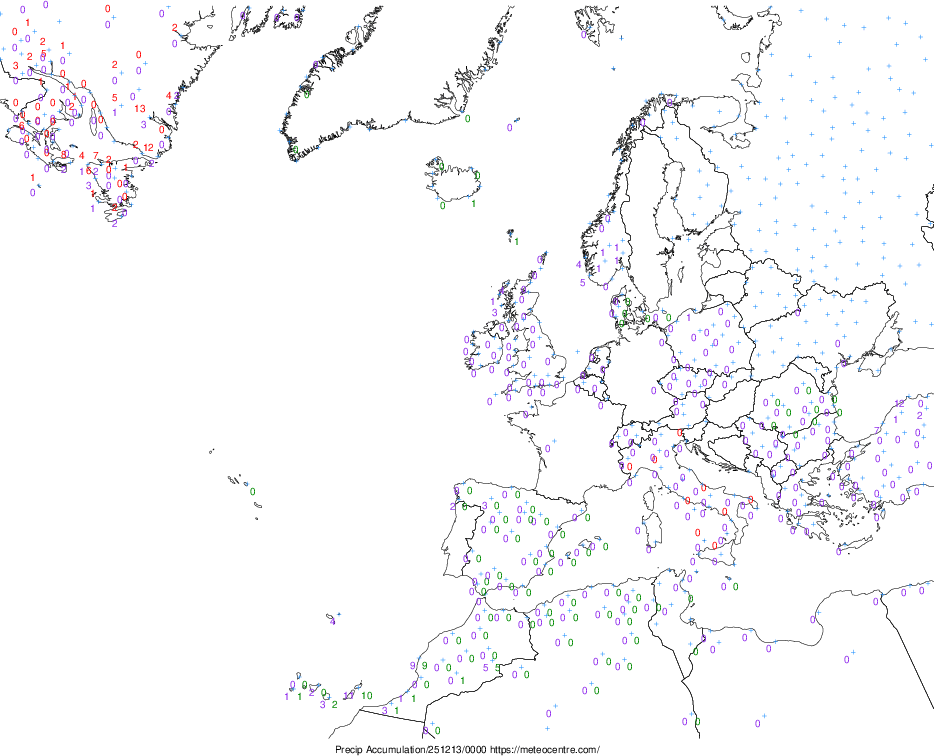 Europe 12-hour Accumulated Precipitation欧洲近12小时累计降水