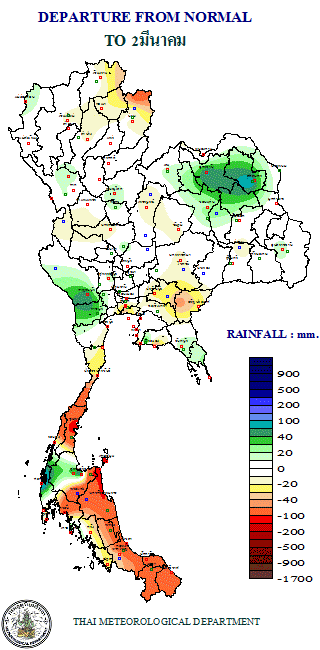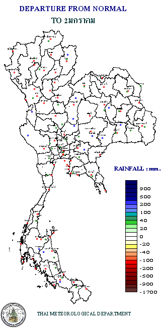 Yearly Accumulate Rain Fall Thailand Depature From Normal 泰国本年降水偏离均值