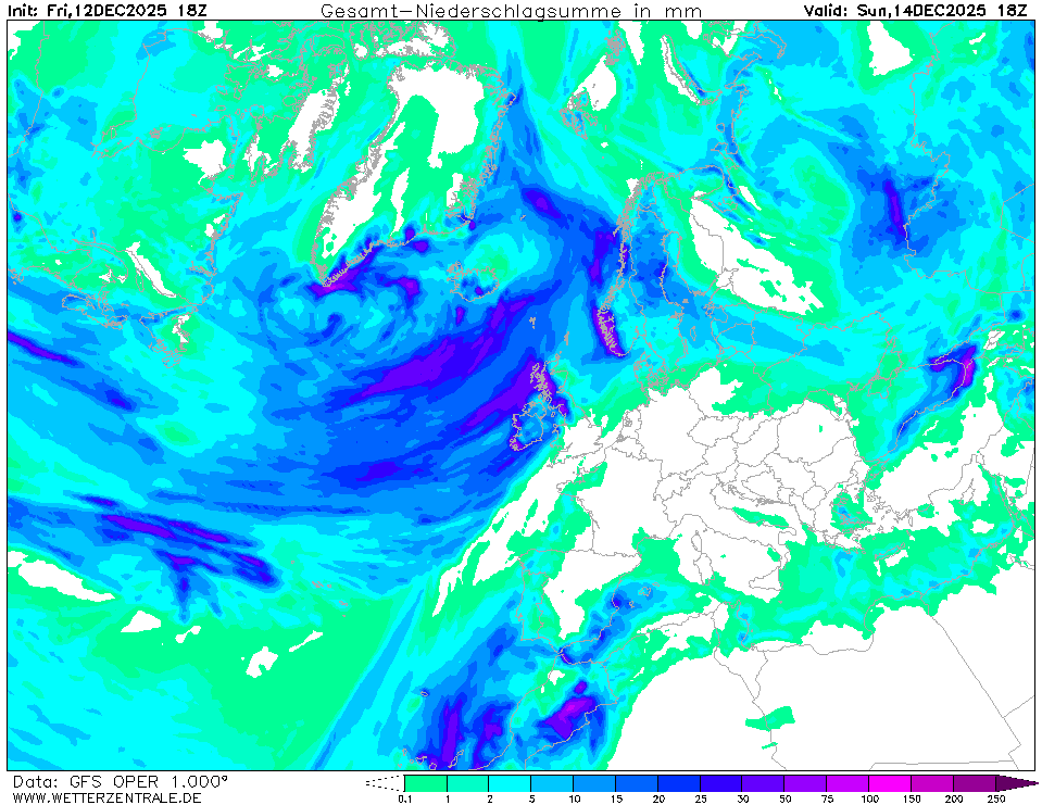 Europe Precipitation 48-Hour Forecast 欧洲未来2天降水预测(毫米)